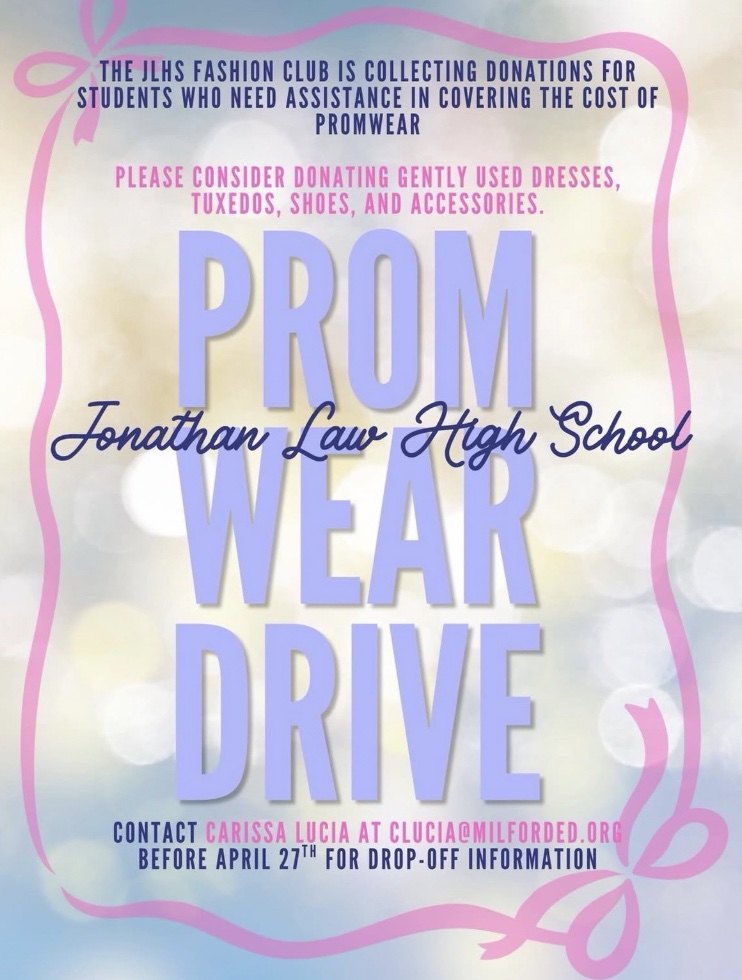 The Jonathan Law Fashion Club is hosting a Prom Wear Drive to support teenagers in the Milford community who might need formal wear for upcoming school dances.